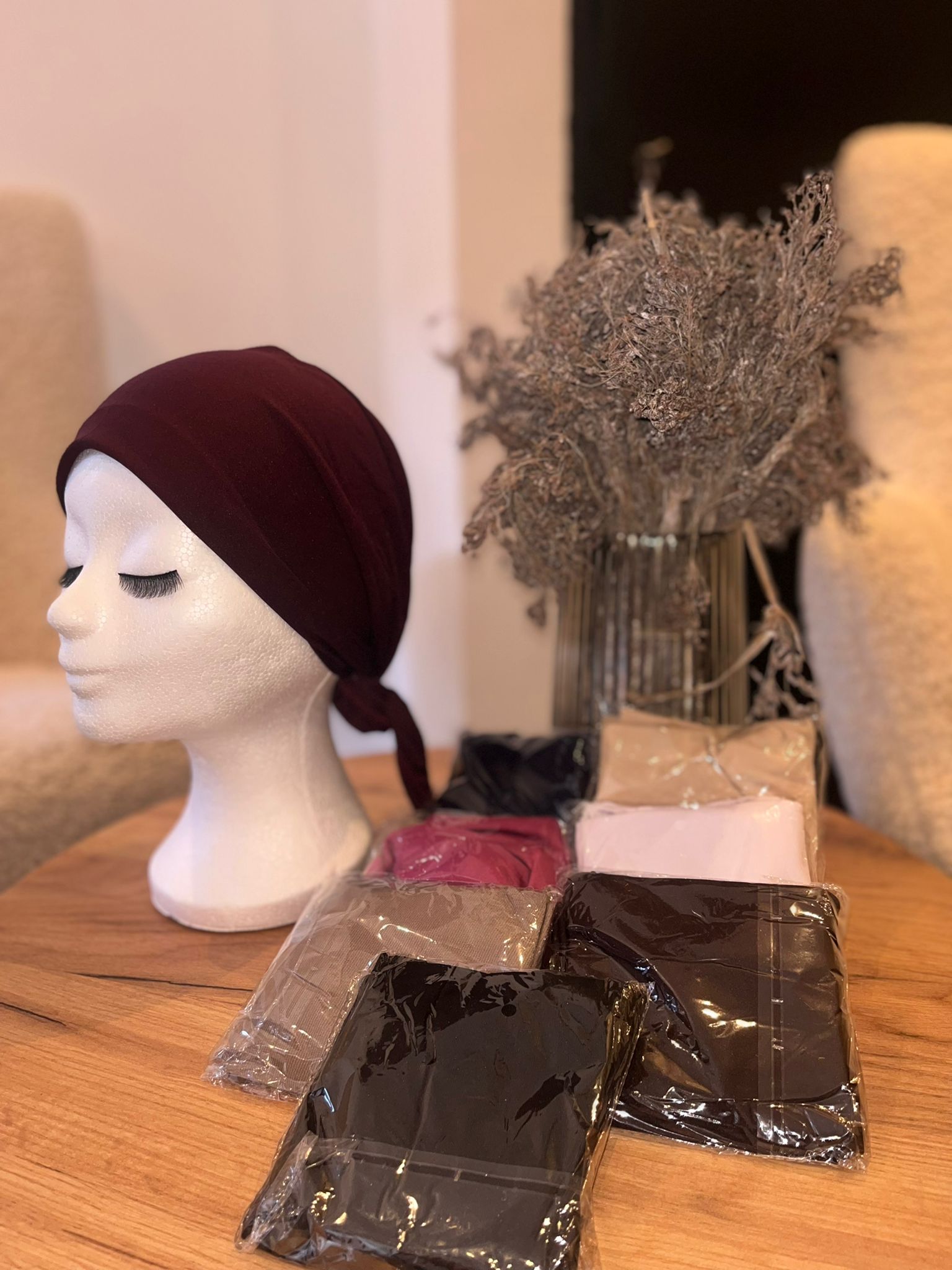 Caps made of cotton fabric are used as an under-kerchief. It shade is 45cm long including rope.